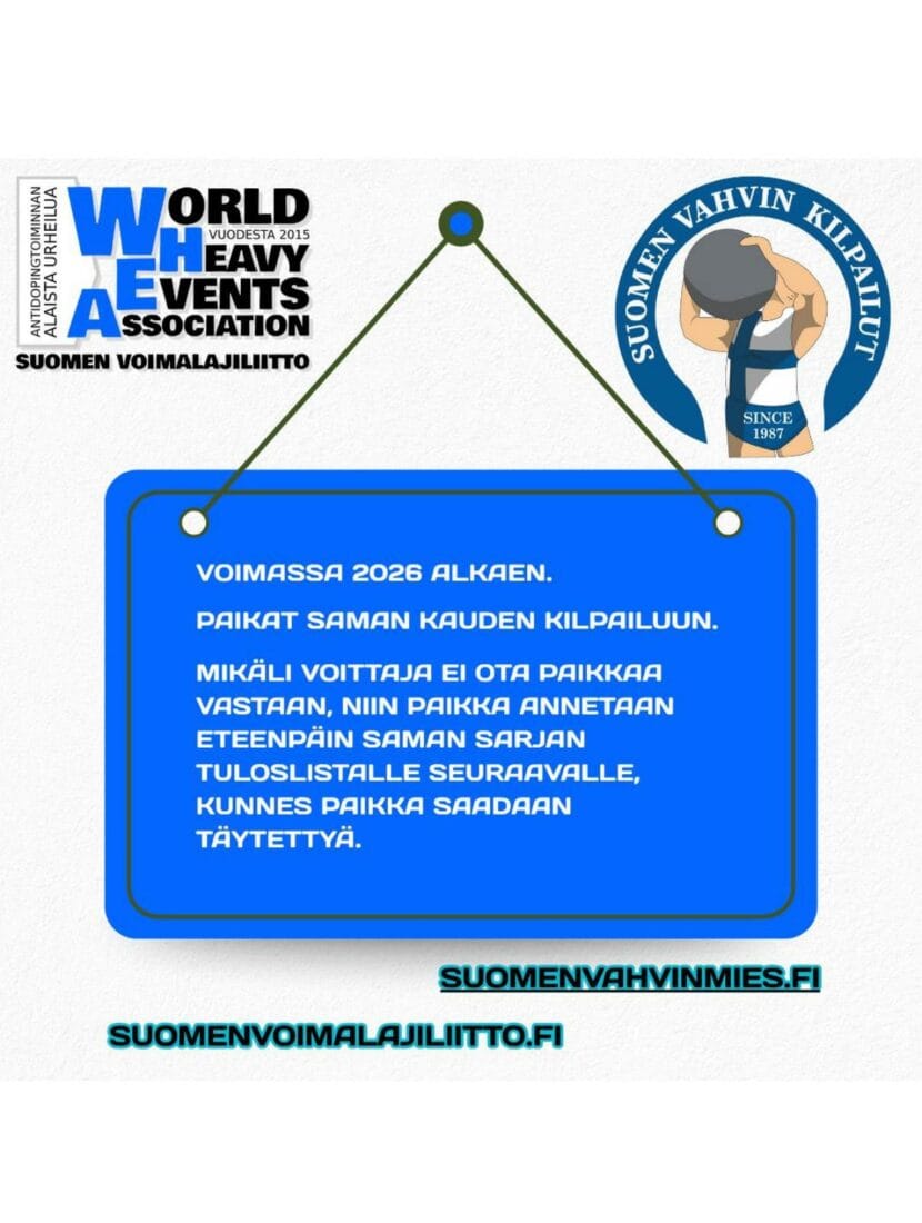 ”Olemme SV Oy:n kanssa jo vuoden verran sovittaneet kalentereita, jotta kilpailut eivät ole aivan lähekkäin ja jaamme paljon näkemyksiä lajin kehittämisestä maassamme ja tulemme tämän sopimuksen myötä edistämään ja monipuolistamaan urheilijoiden hyötyjä ja mahdollisuuksia. Lisäksi yhteistyöllä karsintojen osalta saamme osaltamme hieman rauhoitettua lajin kilpailukalenteria vuosittain myös, joka on etu niin meille molemmille, kuin myös muille suomalaisille kilpailujen järjestäjille. Uskon, että tämä on vasta alkua yhteistyölle, jolla selkeytämme lajimme urheilijan polkua kotimaassa ja saamme myös entistä enemmän kansainvälisiä mahdollisuuksia useammille urheilijoille, sanoo Suomen Voimalajiliiton pj Jyrki Rantanen”.